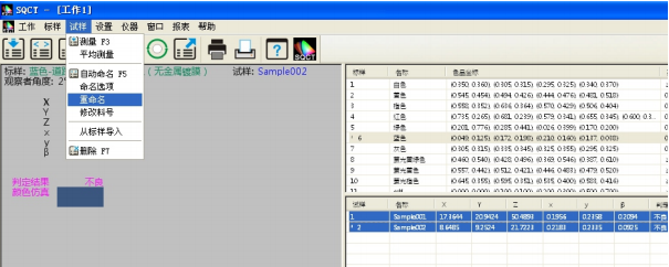 同時可以通過“試樣->重命名/删除”對測試試樣進行重命名和删除操作。