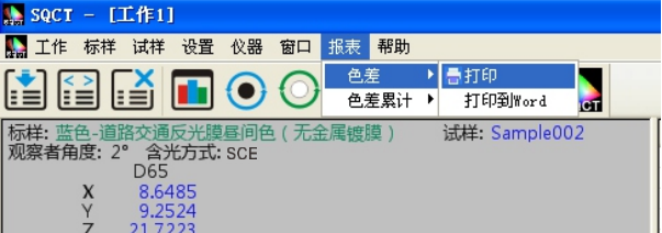 對試樣的測試結果可以通過打印菜單生成測試報表,選中要打印的試樣和标樣,執行“報表->色差->打印/打印到word”或“報表->色差累計->打印/打印到word”,将測試結果打印出來,如圖15、16所示。