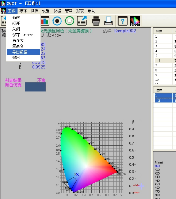 在做好測試準備(bèi)的前提條件下(白闆、黑闆校正完畢(bì)),通常先建立多邊形-容差标樣,然後進行試樣測試,再判定該試樣是否落在多邊形-容差範圍内,打印該試樣的測試數據或是導出該試樣測試數據,保存測試數據,以備(bèi)下次調用。