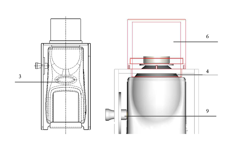 2、輕輕松開手擰螺絲8,使固定闆7沿腰形孔可上下移動,使固定闆7盡量處(chù)於(yú)下方位置;松開手擰螺釘2,使得手擰螺釘2的前端面稍低於(yú)螺釘固定座9的端面。
