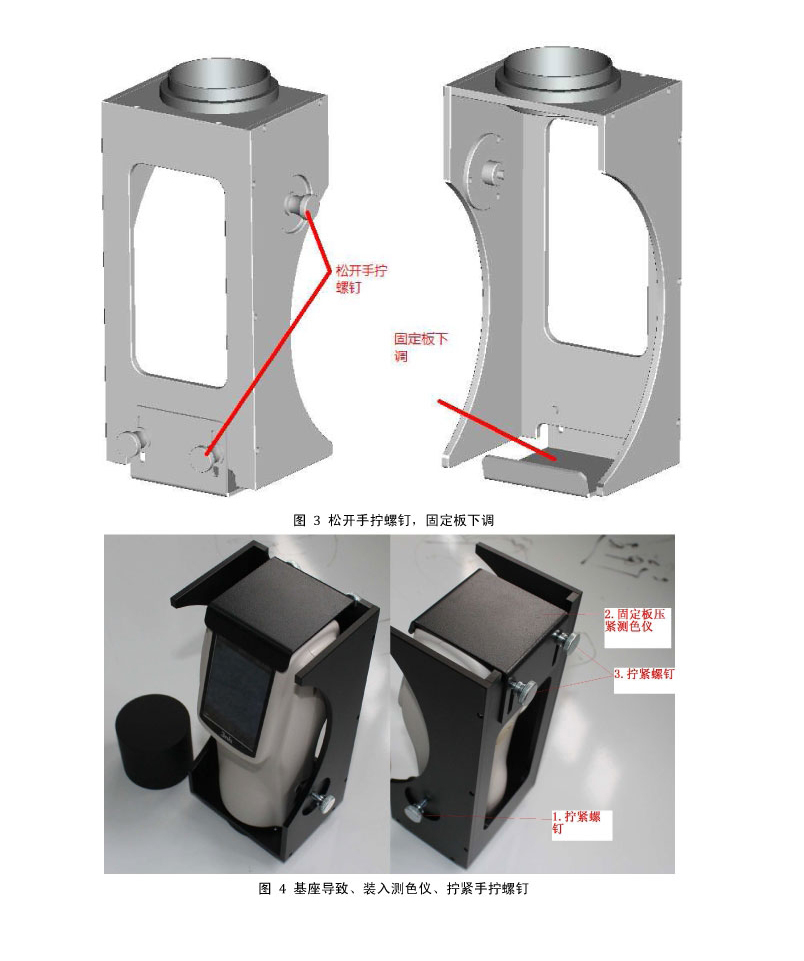注意:確(què)保測色儀固定穩固,確(què)保測色儀測量口徑一側(cè)的台階面緊貼黑腔底闆的底面。