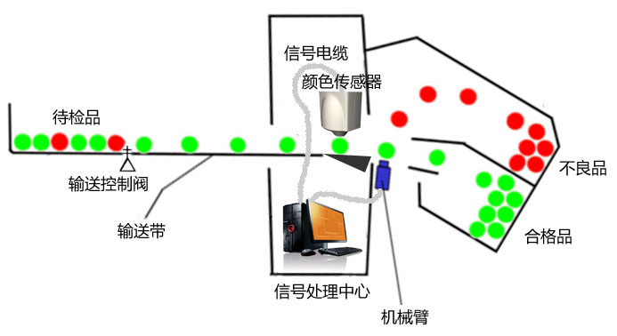 3L001在線式顔色檢測系統採(cǎi)用瞭(le)高精度、高速度、低成本的核心技術,能在批量生産産品的流水線上代替人工進行顔色判讀,自動分辨出合格品和不良品。