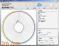 該測試提供易於(yú)管理、而又有效的測試方法測試個體色覺。用於(yú)政府和工業界應用40多年,測試系統由4盒共85個橫跨可見光譜的可移動式色棋(色相漸變(biàn))組成。通過按色相排列色棋順序測試色覺異常或其傾向性。包括基於(yú) Windows 的電腦評分軟體。4盒色棋裝於(yú)鋁合金手提箱内。 必須在日光條件下進行這個測試,例如 GretagMacbeth SpectraLight 和 Judge 查看室提供的照明。Farnsworth-Munsell 100 色相測試用於(yú)将具有正常色覺的人分成優異、一般和差的辨色能力等級,可測試色覺缺陷人員的色弱區域。